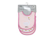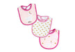 3 piece Bib set. 2 layer bibs that are soft and absorbent. Velcro closure.