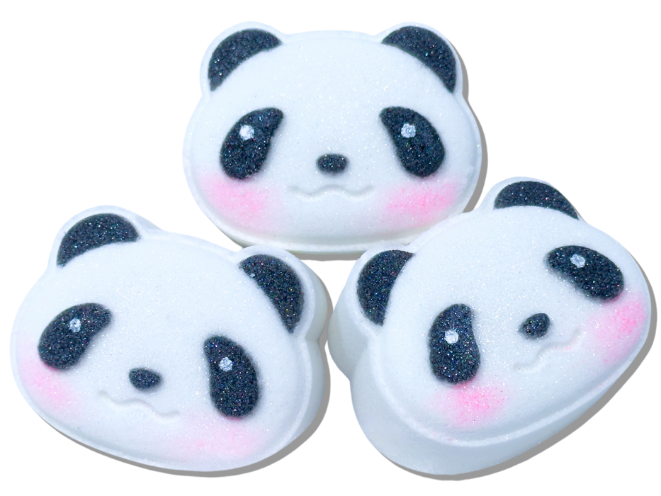 Pandy Bath Bombs 150g. Includes three (3) adorable pandas with hidden purple colour inside each that comes out as the bomb dissolves!