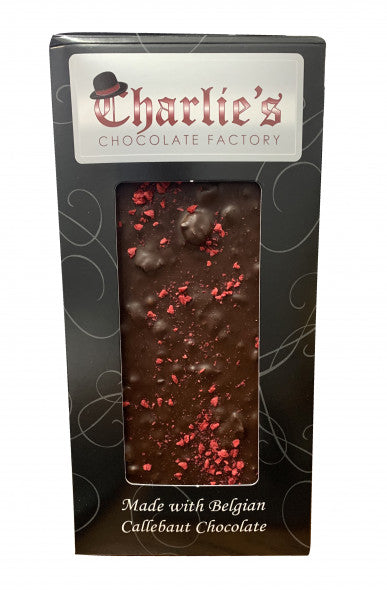 Original price $6.95 - Original price $6.95Original price$6.95$6.95 - $6.95Current price $6.95DARK CHOCOLATE and Freeze Dried Raspberries Size: 6.5 x 2.75" (Bar)8.5 x 4.25" (box size)Weight: 100 grams ALL PRODUCTS MADE WITH PURE "CALLEBAUT" ...