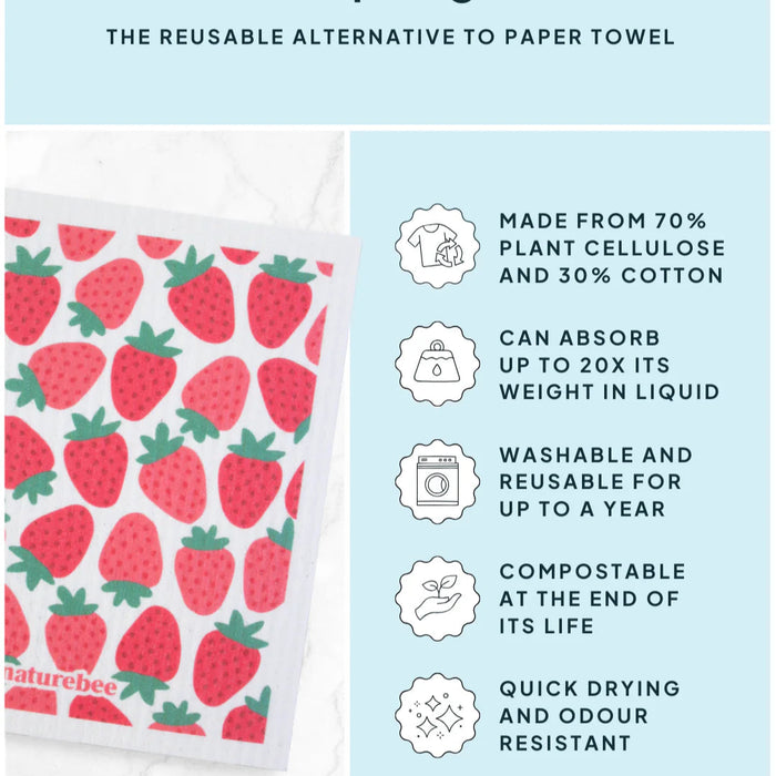 A cheerful Nature Bee Swedish Sponge Dishcloth makes cleaning more fun! These absorbent, spongy cloths soak up spills and gently wipe down surfaces - no need for single-use paper towels!