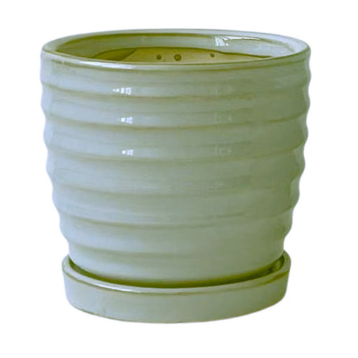 4"DX6.4"H White Linear Textured Ceramic Pot.