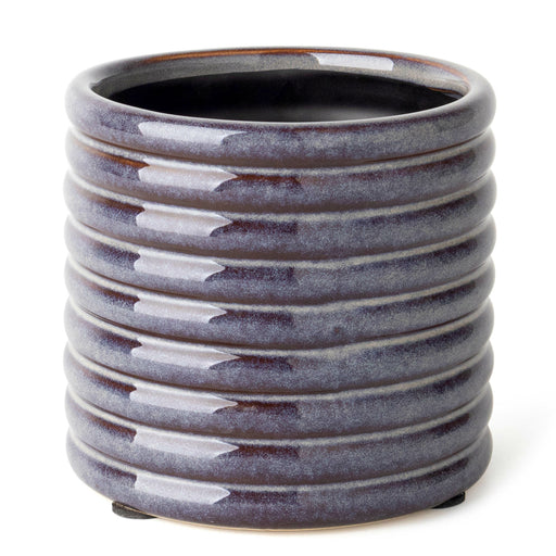 Stoneware modern ceramic pot in a grey / plum finish. No drainage hole. small 4.25”dia x 4.75”H Fits 4" nursery pot