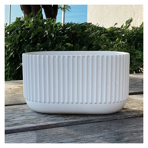 White Embossed Ribbed Ceramic Oval Pot. No drainage hole.  7.16"X4.7"X3.9"H