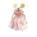 Hanging Ornament wool mouse wearing a pink/white fur skirt and scarf. 5"