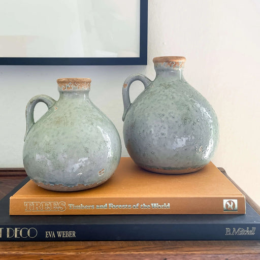 Original price $29.50 - Original price $45.00Original price$29.50 - $45.00$29.50 - $45.00Current price $29.50Delphi is a vintage-style ceramic jug vase with a single handle, rounded body, and a soft blue-grey crackled glaze. Its aged finish and raw terraco...