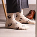Savour the aroma of nostalgia with these retro coffee socks, where one sock features a pouring coffee pot and a mug, while the other showcases beans and a fresh brew that's ready to go.