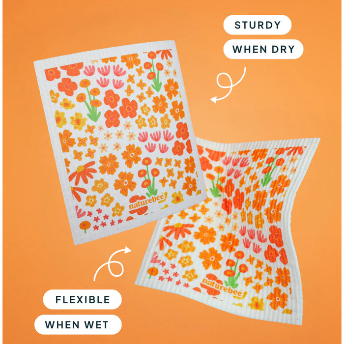 A cheerful Nature Bee Swedish Sponge Dishcloth makes cleaning more fun! These absorbent, spongy cloths soak up spills and gently wipe down surfaces - no need for single-use paper towels!